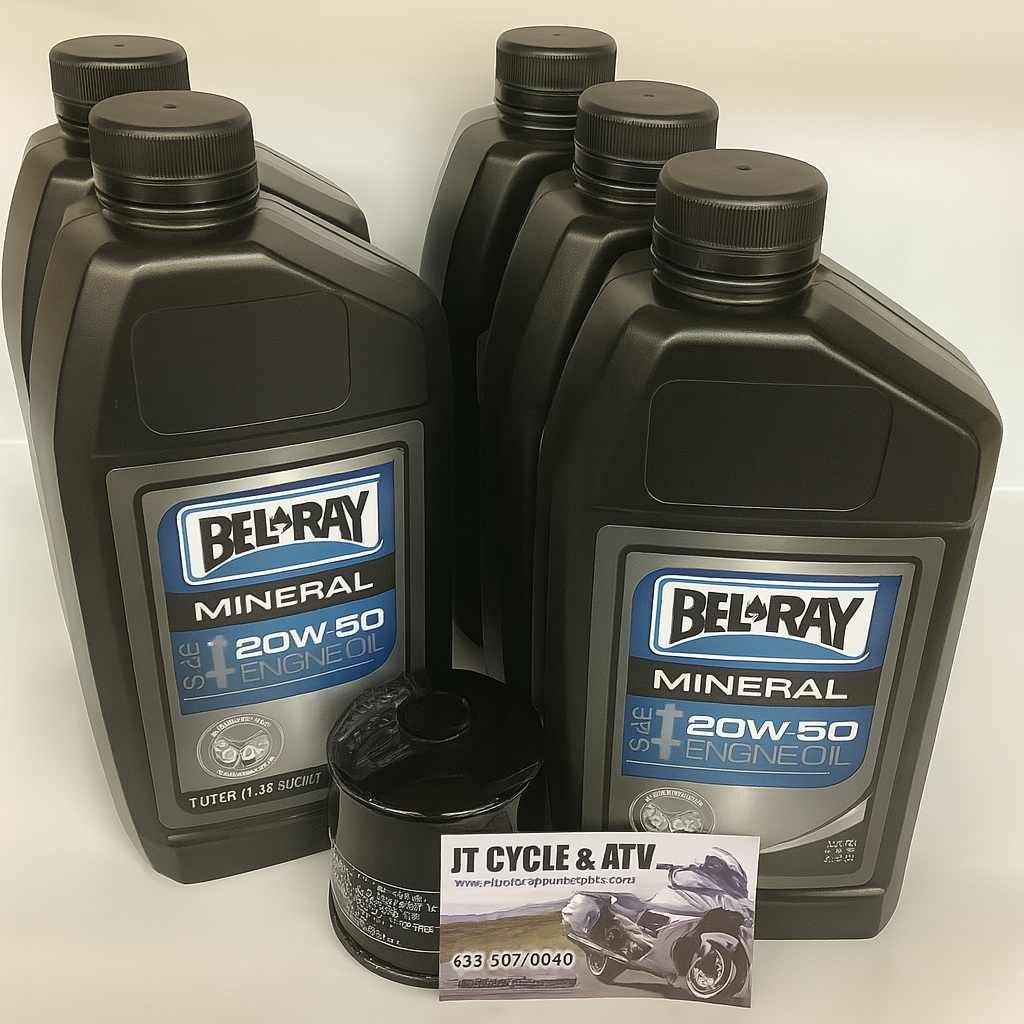 5 qts high quality Belray Powersports 20W-50 Motorcycle OEM spec (Jaso MA2) motor oil